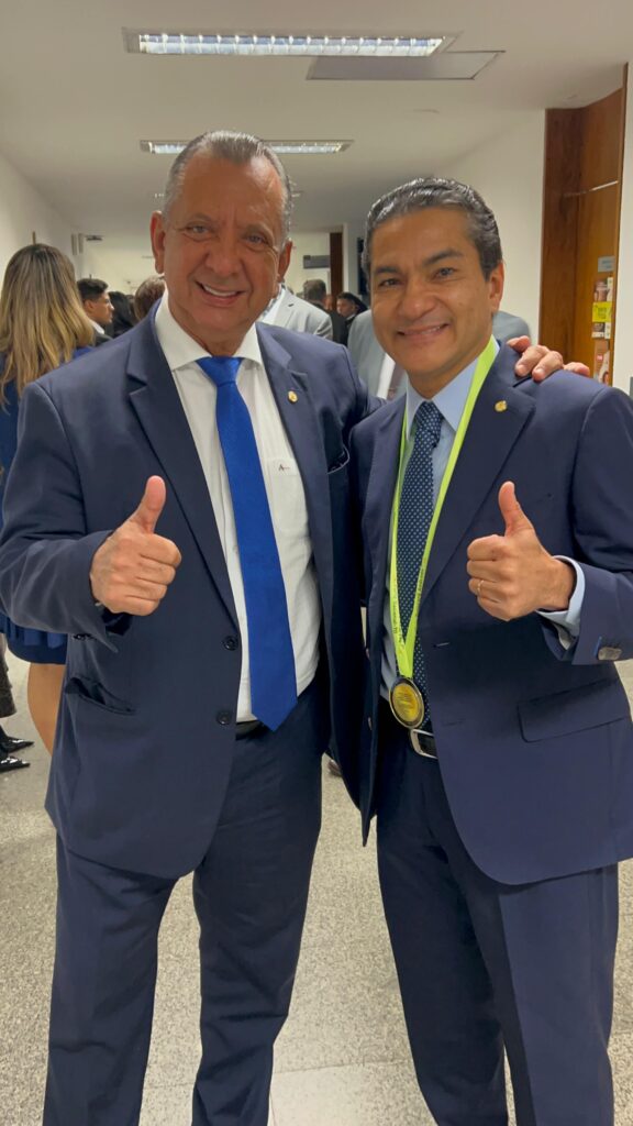 Após a entrega, o deputado se referiu ao momento como um marco importante. “Um dia muito especial, hoje entrego a medalha que leva o nome do meu pai para o senador Eduardo Gomes, o deputado e vice-presidente da Câmara Marcos Pereira, deputado Ely Borges e também para Tiana, chefe de gabinete da liderança do Republicanos.
