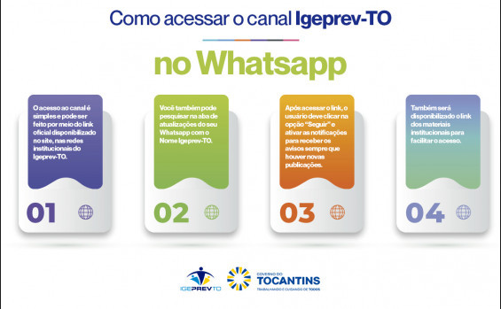 O acesso é simples e rápido. O link oficial está disponível no site e nas redes institucionais do Igeprev/TO, e pode ser acessado diretamente pelo endereço: https://www.whatsapp.com/channel/0029Vb7f6ca9xVJg63dQ6f2m.Também é possível encontrá-lo diretamente no WhatsApp, na aba Atualizações, pesquisando por Igeprev/TO.